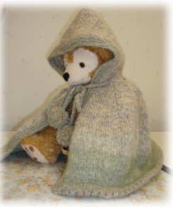 ![]() 自主トレ ベビーケープ♪ ・・・棒針編み (専属モデル:ダッフィー君) |