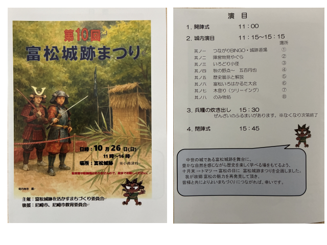 ・10月26日(日)第10回富松城跡まつり 11時から16時 小雨決行
